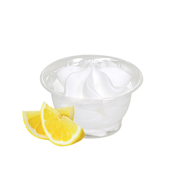 ENGLISH: Sorbet ice cream cup with lemon taste, refreshing and thirst quenching. Without milk and derivatives.